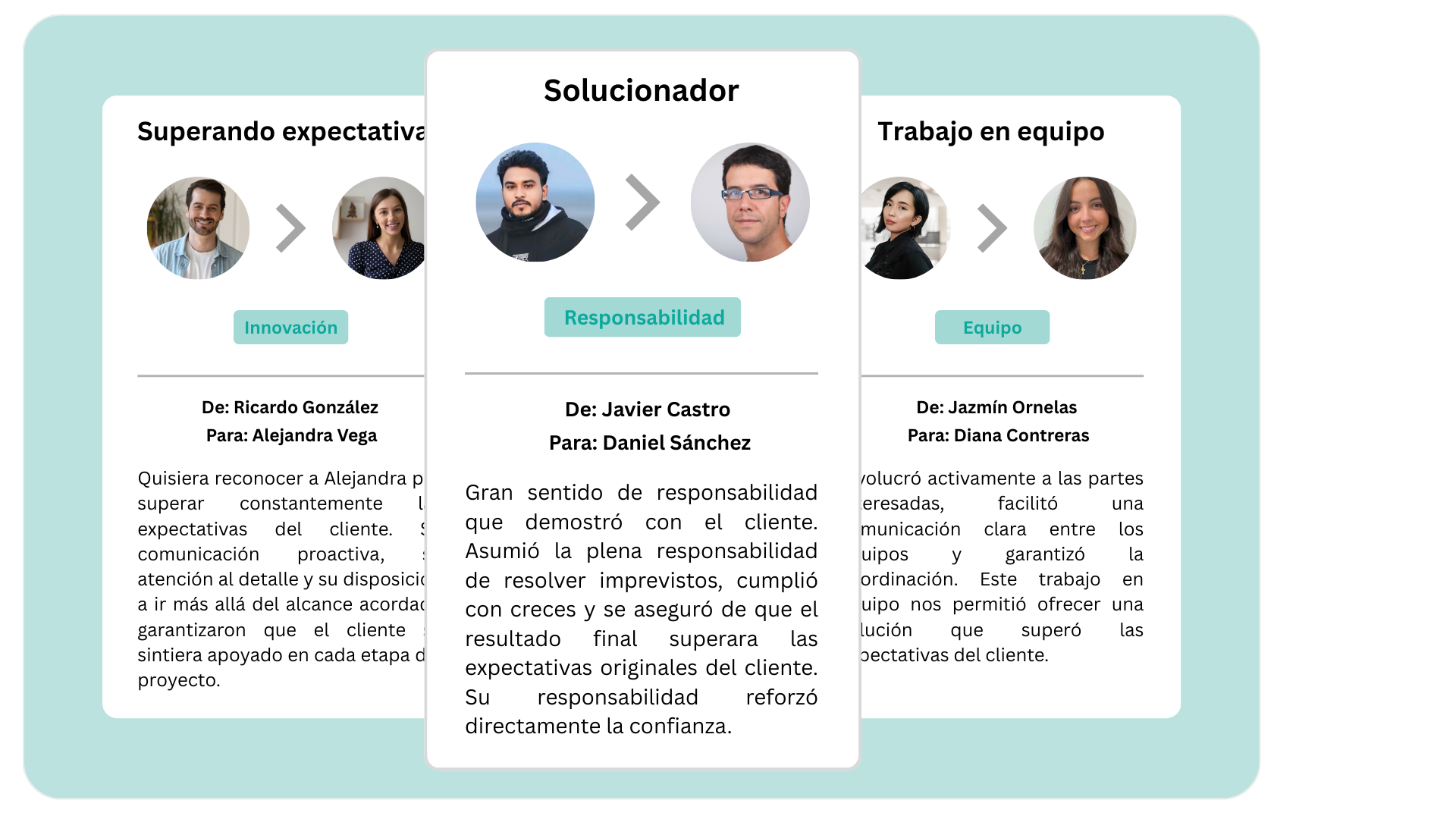 Envía reconocimiento público o privado entre compañeros de equipo. Cada mensaje se guarda en Sphere, creando un registro continuo de logros, crecimiento y esfuerzo.