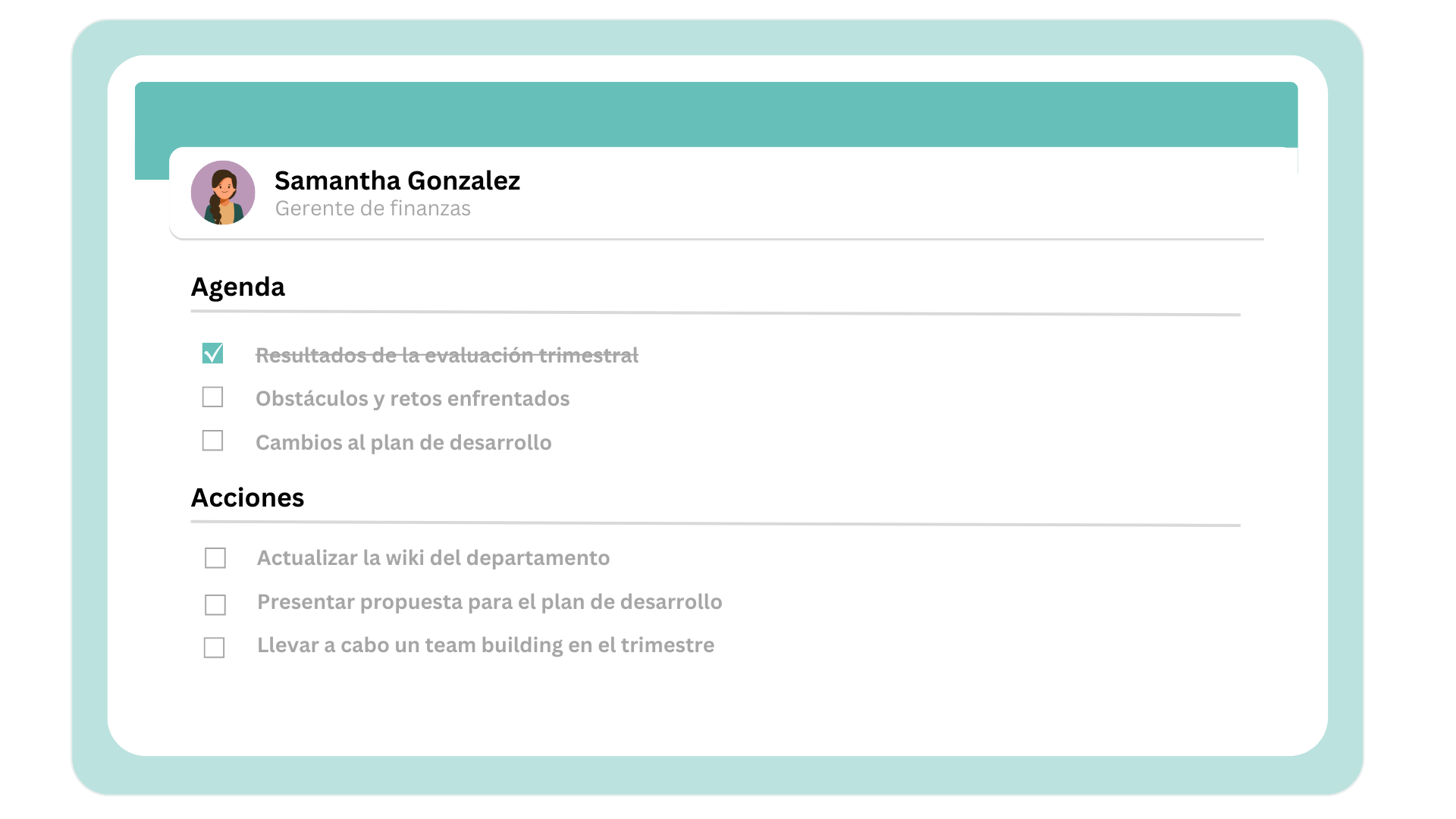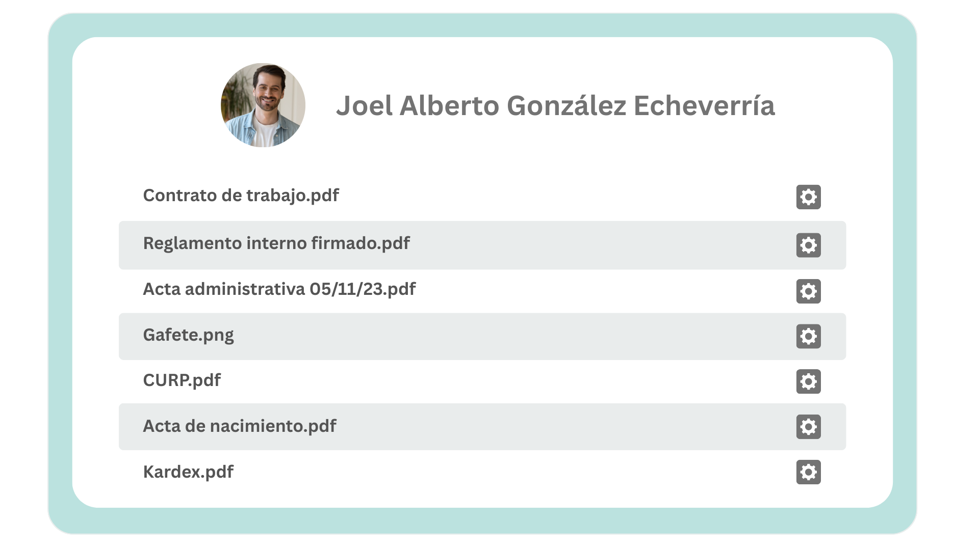 Almacena los documentos de tus empleados de forma segura. Haz seguimiento de sus intereses para crear una conexión real. Realiza reuniones individuales constantes. Haz que el reconocimiento sea visible y significativo.