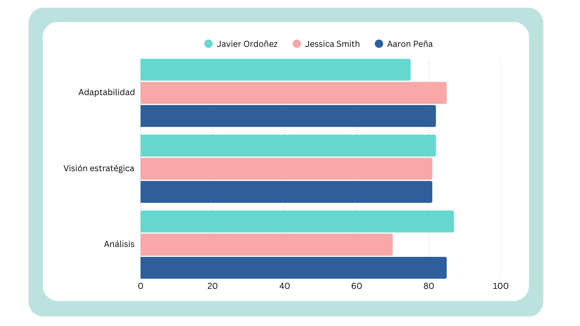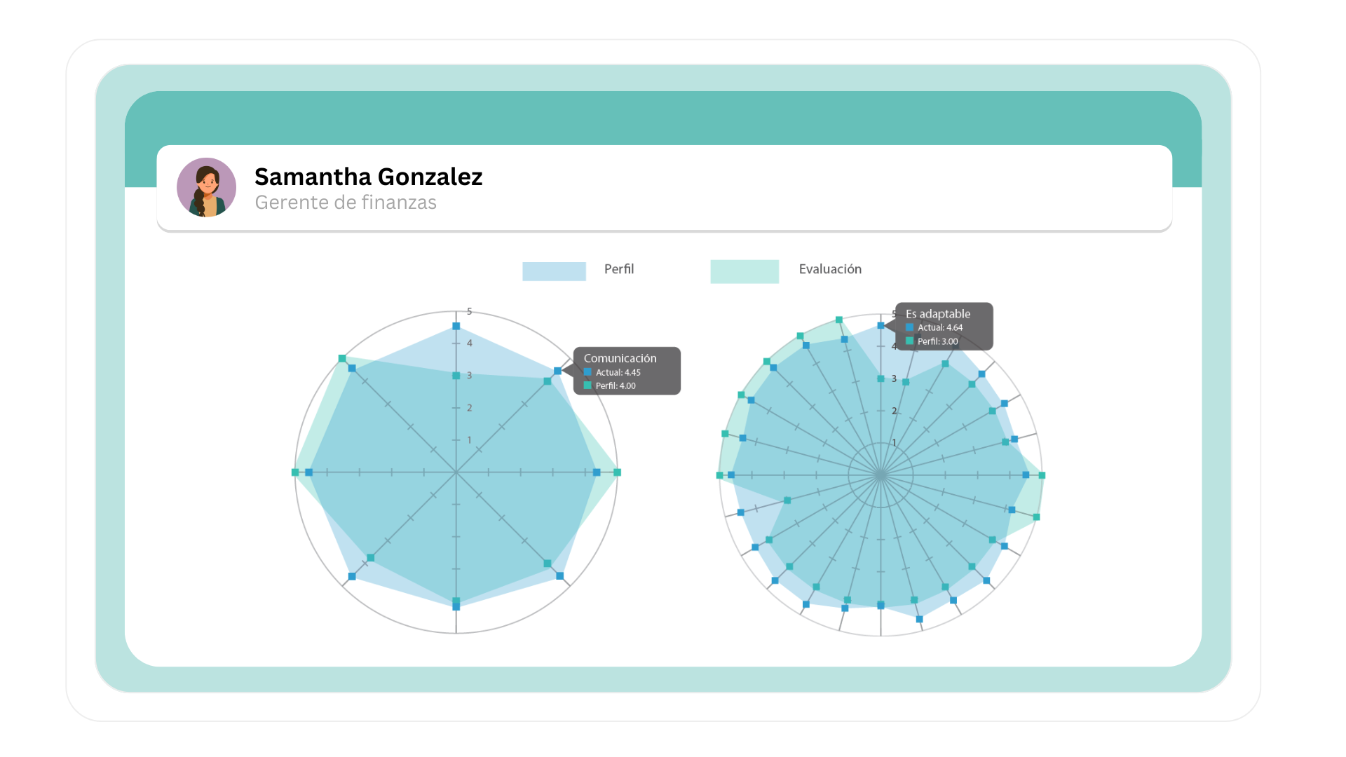 Evalua las competencias con retroalimentación integral. Compara el desempeño con KPI reales. Realiza un seguimiento de los compromisos a lo largo del tiempo. Planifica la capacitación basándote en las áreas de oportunidad reales.