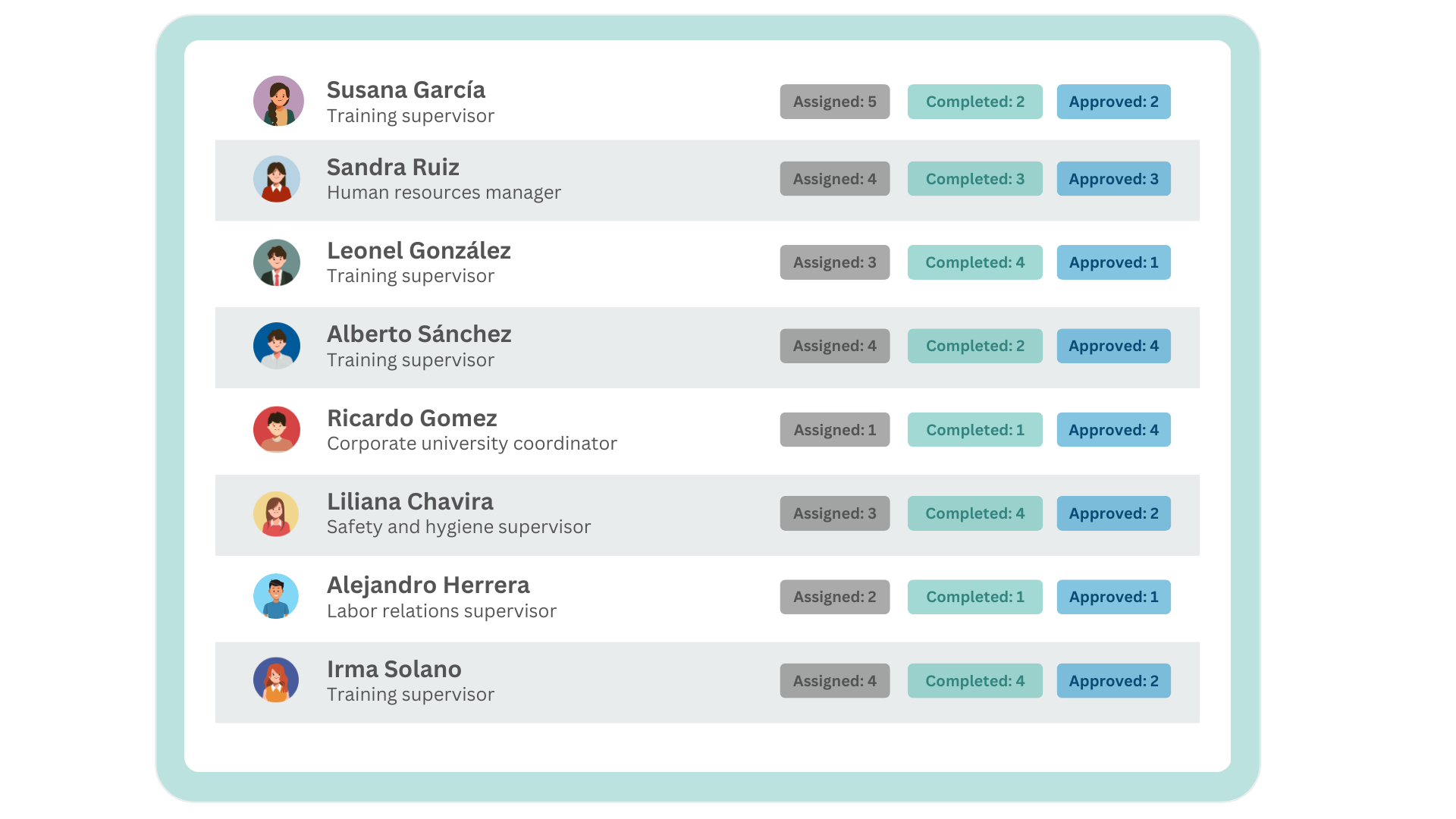 Know the personal status of each team member at the moment. Identify which trainings are still valid, which are pending delivery and develop the perfect plan to implement.