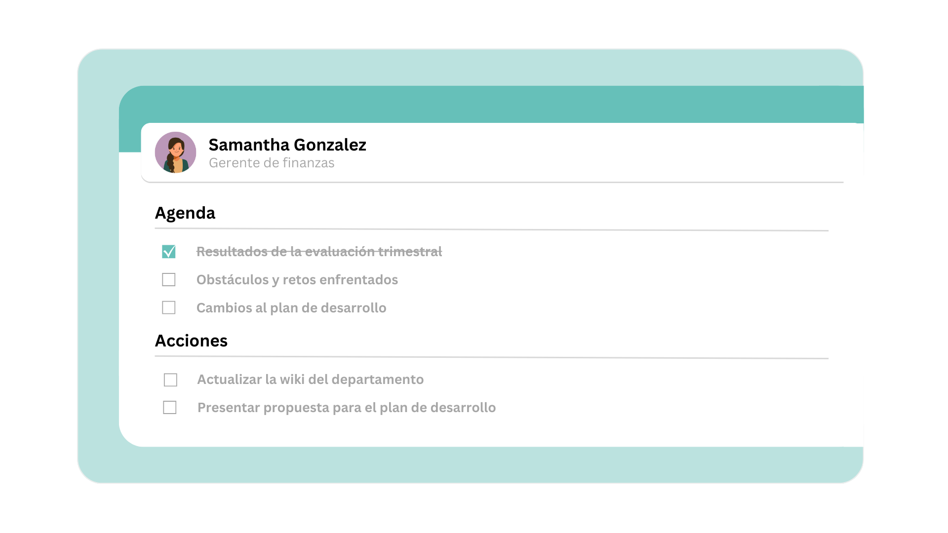Sphere ayuda a los gerentes a organizar reuniones individuales estructuradas que se centran en la retroalimentación, el progreso y el apoyo. Las notas se mantienen organizadas y son fáciles de consultar con el tiempo.