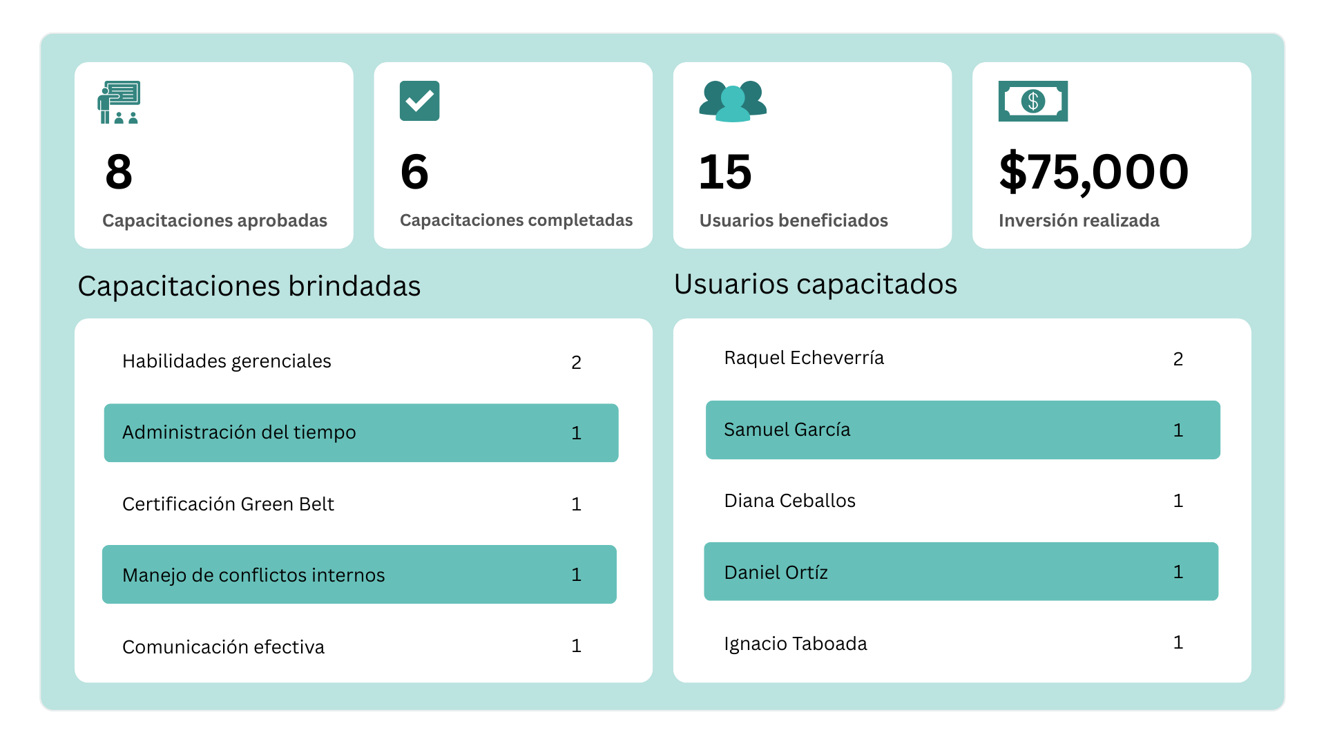 Elimina las conjeturas. Establece expectativas, monitorea el progreso y convierte la retroalimentación en crecimiento. Ofrece a los líderes una forma práctica de medir habilidades, revisar resultados y guiar el desarrollo.