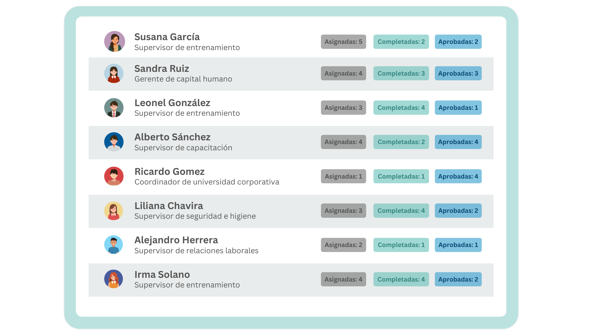 Conoce el status personal de cada miembro del equipo al momento. Identifica cuales capacitaciones siguen vigentes, cuales pendientes de impartir y desarrolla el plan perfecto para implementar.
