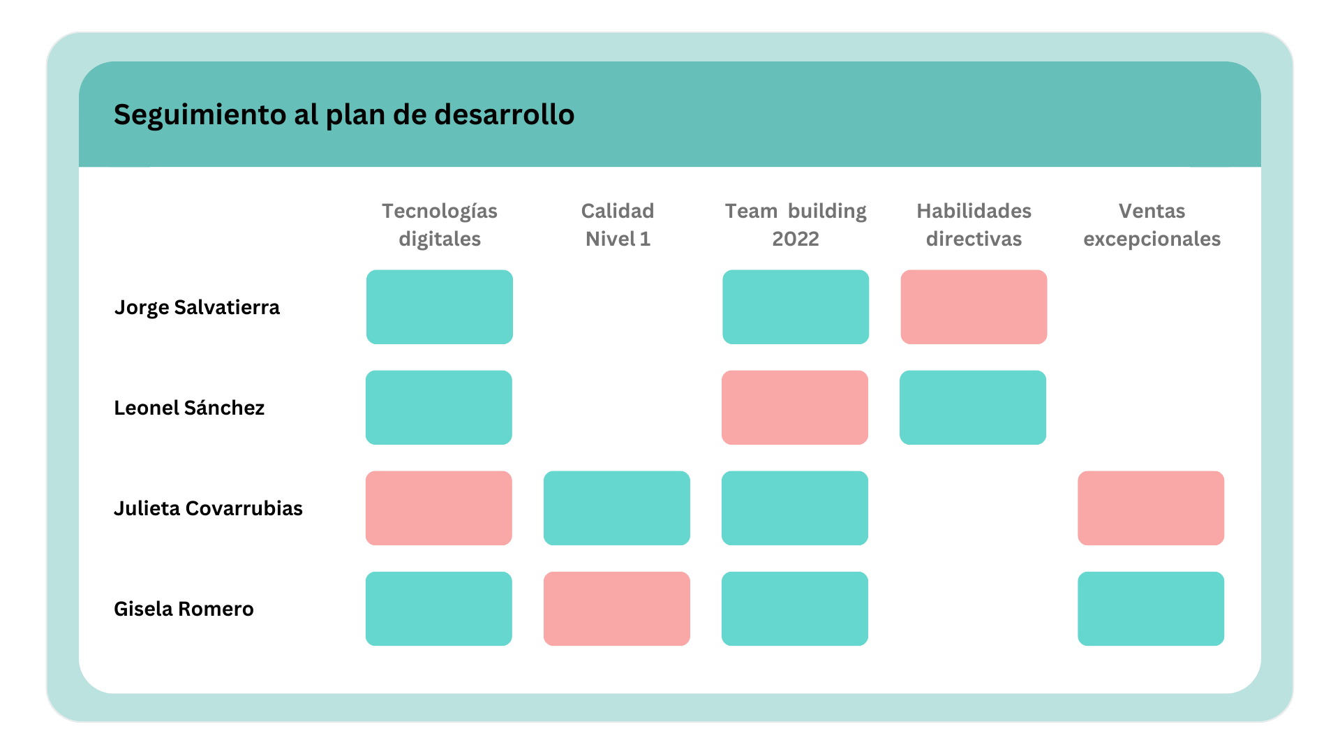 Conoce el nivel de carga de cada persona de acuerdo a su perfil de puesto. Identifica los niveles de cumplimiento de cada persona y verifica que los cumplimientos al plan de desarrollo.